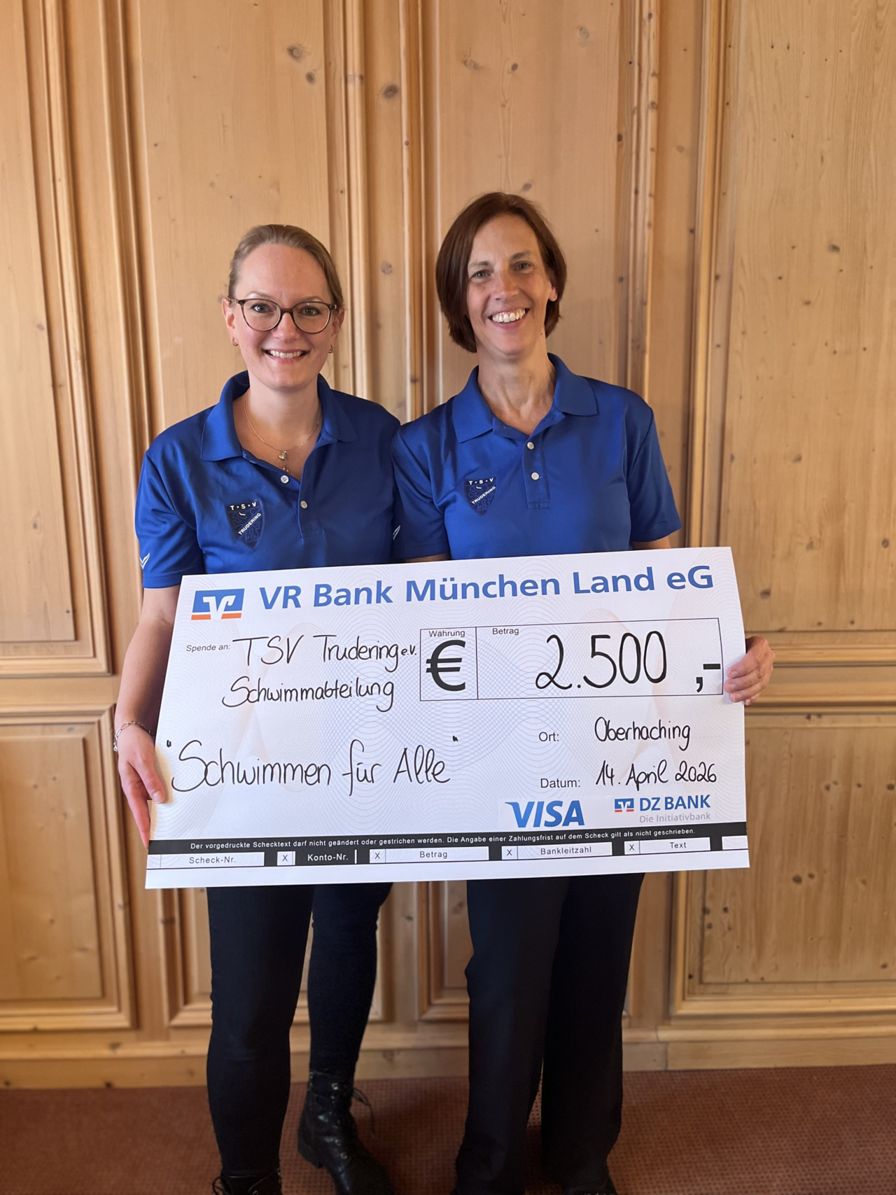 Großer Erfolg für den TSV Trudering: Als Hauptgewinner des bundesweiten Vereinswettbewerbs „Visa feiert Inklusion durch Sport. Wir auch!“ durfte die Schwimmabteilung des Vereins nun den offiziellen Spendenscheck über 2.500 Euro entgegennehmen.