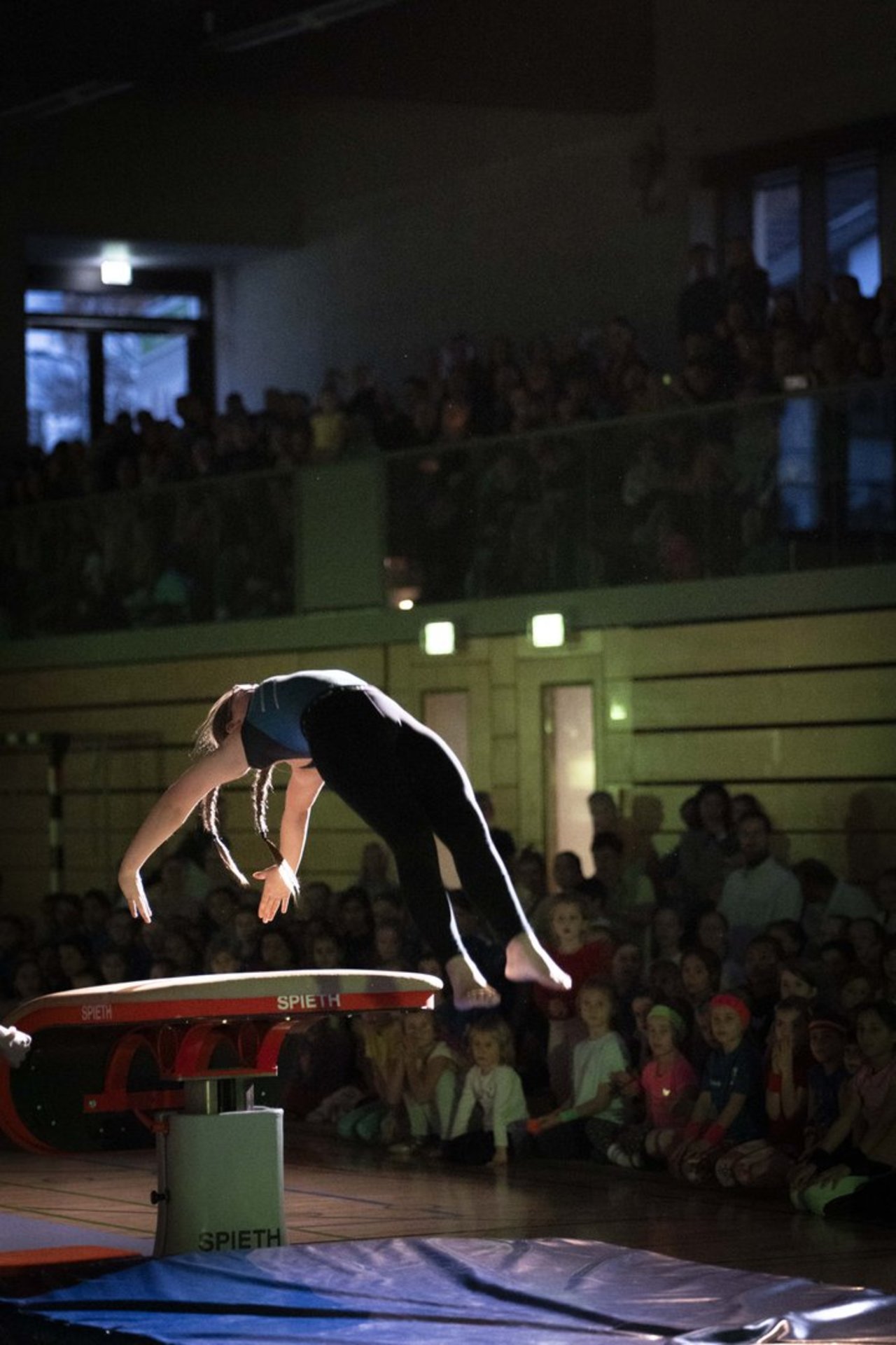 Ob die Eltern-Kind-Gruppe mit den Klängen zum Pumuckl aus den 60er Jahren, die Wettkampftruppe der Jahrgänge 2010 bis 2015 im Stile der 80er oder das Trainerteam, das die Veranstaltung mit einem Rückblick auf die 1920er Jahre abschloss – jedes Jahrzehnt wurde berücksichtigt. “Unsere knapp 200 Teilnehmer übten bis zu fünf Wochen für das Highlight”, sagt Nina Dengl, Abteilungsleiterin und Moderatorin der Veranstaltung. “Ein großer Dank geht natürlich an alle Mitglieder unserer Abteilung, aber auch an die zahlreichen helfenden Hände im Hintergrund, die diese Veranstaltung erst ermöglicht haben.” Viele Turngeräte und auch die technische Ausstattung wurden bereits am Vortag eigens in einen LKW geladen und schon in der Früh zur Halle gefahren.